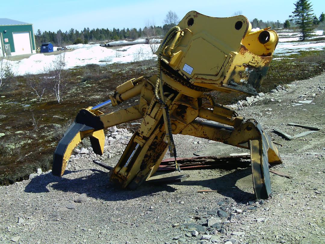 Plusieurs godets, grapins, marteaux, etc..
